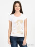 Великолепная футболка из тонкого эластичного трикотажа. Округлый вырез горловины, короткий рукав, полочка декорирована принтом. Повседневный вариант.