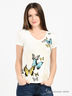 Великолепная футболка из тонкого вискозного трикотажа. V-образный вырез горловины, короткий рукав, полочка декорирована принтом. Повседневный молодежный вариант.