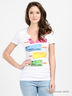 Потрясающая футболка из тонкого, мягкого хлопкового кулирного трикотажа. Фигурный вырез горловины, ворот со вставкой из рибаны. Короткие рукава. На полочке крупный печатный рисунок. Стильная модель на каждый день.