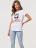 • Особенности: Футболка прямого силуэта, имеет свободную посадку без прилегания! Выполнена из хлопкового трикотаж. Детали: горловина обработана бейкой, по переду нанесен принт.