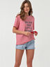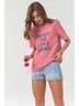• Особенности: Футболка прямого силуэта среднего объема из трикотажа. Детали: горловина обработана бейкой, по переду нанесен принт.