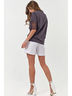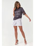 • Особенности: Футболка прямого силуэта из трикотажа. Детали: горловина обработана широкой окантовкой, по низу рукавов притачано кружево, по переду нанесен принт.