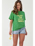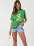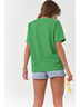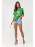 • Особенности: Футболка прямого силуэта среднего объема из трикотажа. Детали: горловина обработана бейкой,по переду нанесен принт.