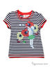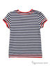 Модная футболка для девочки из бамбука в морском стиле, оформлена аппликацией в виде разноцветных цветов. Модель имеет короткий рукав, низ и горловина обшиты контрастной тканью, что делает простую вещь, оригинальной.