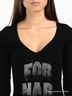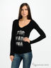 В мягкой, приятной на ощупь футболке Вам будет комфортно как в повседневной жизни, так и на занятиях спортом. Тонкая, приятная на ощупь, эластичная ткань. Длинный прямой рукав. V-образная горловина обработана трикотажной лентой. Футболка декорирована сборками на резинках по бокам. Спереди рисунок из страз в виде логотипа бренда.