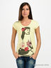 В мягкой, приятной на ощупь футболке Вам будет комфортно как в повседневной жизни, так и на занятиях спортом. Тонкая трикотажная ткань. Короткий рукав. Ворот обработан трикотажной лентой. Футболка декорирована набивным рисунком с пайетками.