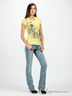 В мягкой, приятной на ощупь футболке Вам будет комфортно как в повседневной жизни, так и на занятиях спортом. Тонкая трикотажная ткань. Короткий рукав. Ворот обработан трикотажной лентой в мелкий рубчик. Футболка декорирована набивным рисунком.