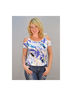 Детали: круглый вырез; оригинальный крой короткого рукава с прорезями на плечах; тонкие бретели завязываются на плечах; стильный принт