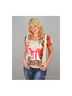 Детали: эффект двойки; круглый вырез; короткий рукав; два кармана; оригинальный принт
