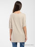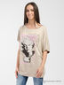 Очаровательная футболка свободного покроя с короткими рукавами и округлым вырезом горловины. Спереди модель декорирована контрастным принтом. Отличный вариант на каждый день.