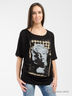Очаровательная футболка свободного покроя с короткими рукавами и округлым вырезом горловины. Спереди модель декорирована контрастным принтом. Отличный вариант на каждый день.