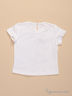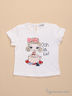 Футболка с короткими рукавами и округлым вырезом. Спереди изделие украшено декоративным бантом из контрастной по цвету ткани. Оборки по вырезу горловины и по низу изделия. Очень эффектный вариант для детского гардероба.