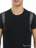 Детали: округлый вырез горловины дополнен трикотажной лентой, короткий прямой рукав