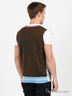 Модная футболка с эффектом двойки выполнена из мягкого, эластичного кулирного трикотажа разных плотностей. Округлый вырез горловины. Короткие прямые рукава. Во всю спинку вшита крупная вставка из плотного трикотажа. Полочка декорирована контрастной вставкой с декоративной застежкой на пуговицы. На полочке два накладных кармана. Яркий и лаконичный дизайн.