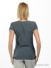 Детали: v-образный вырез горловины и короткий рукав дополнены эластичной лентой