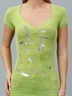Прекрасная удлиненная футболка с короткими рукавами. Модель с V-образным вырезом горловины декорирована оригинальным рисунком. Отличный вариант для создания повседневного образа.