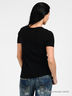 Повседневная футболка прямого силуэта. Выполнена из приятной на ощупь ткани джерси. Округлый вырез горловины. Короткие рукава. Нижняя часть украшена металлическим декоративным элементом в виде логотипа бренда. Сочетается с любыми по стилю и фасону вещами!