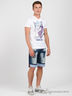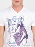 Детали: V-образный вырез горловины, короткий рукав, полочка украшена аппликацией и нашивками