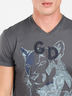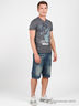 Детали: V-образный вырез горловины, короткий рукав, полочка украшена аппликацией и нашивками