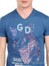 Детали: V-образный вырез горловины, рукав короткий, броский принт на полочке.
