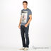 Футболка трикотажная. Классический крой. V-образный вырез. Декоративная прострочка. Рисунок-принт на передней части изделия.