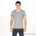 Футболка трикотажная прямого кроя. V-образный вырез. Декоративная прострочка. Рукава и горловина с эффектом двойки.