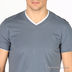 Футболка трикотажная прямого кроя. V-образный вырез. Декоративная прострочка. Рукава и горловина с эффектом двойки.
