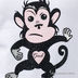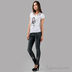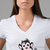 Футболка с V-образным вырезом и коротким рукавом. Полочка декорирована изображением обезьянки и стразами.