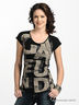Детали: круглая горловина, короткие цельнокроеные рукава, оригинальный принт с бисером