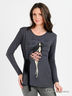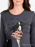 Детали: округлый вырез горловины, длинный рукав, полочка украшена аппликациями и стразами, завязки