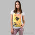 Стильная трикотажная футболка серого цвета с коротким рукавом. Округлый вырез горловины. Полочка декорирована ярким принтом со стразами. Вырез горловины и низ футболки выполнены в несколько слоев ткани с необработанными краями.