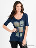 Детали: округлый вырез, короткий рукав, полочка украшена аппликациями