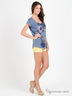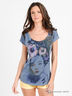 Детали: округлый вырез горловины, короткий рукав, полочка украшена аппликацией и стразами