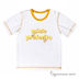Белая футболка для мальчика. С желто-оранжевой окантовкой горловины и веселым принтом на груди. Эта модель обязательно понравится Вашему ребенку.