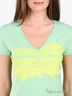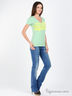 Детали: V-образный вырез горловины, короткий рукав, полочка украшена аппликацией и стразами