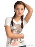 Приталенная модель с коротким рукавом декорирована аппликацией и стразами.