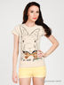 Детали: округлый вырез горловины, короткий рукав, полочка декорирована оригинальным набивным рисунком и стразами