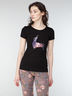 Мягкая уютная футболка с круглым вырезом и короткими рукавами, с принтом на груди. Можно использовать в качестве одежды для сна.