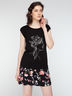 Мягкая уютная футболка с круглым вырезом и спущенным плечом, с принтом на груди. Можно использовать в качестве одежды для сна.