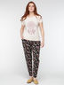 Мягкая уютная футболка с круглым вырезом и короткими рукавами, с принтом на груди. Можно использовать в качестве одежды для сна.