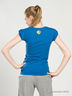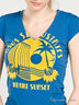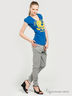 Футболка женская трикотажная. Выполнена из перфорированной ткани. Глубокий V-образный вырез, а также манжеты оформлены трикотажной резинкой в мелкий рубчик. Небольшая декоративная сборка на окате рукава. Оригинальный рисунок-принт на полочке изделия.