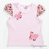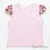 Футболка для девочки декорированная нашивками в виде бабочек. Круглый вырез горловины, рукав фонарик выполнен из отделочной ткани. Силуэт прямой.