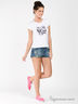 Детали: округлый вырез горловины, короткий рукав, полочка декорирована аппликациями