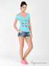 Детали: округлый вырез горловины, короткий рукав, полочка декорирована аппликациями