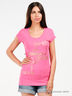 Детали: округлый вырез горловины, короткие рукава крылышки, полочка декорирована брендовым принтом с металлическими клепками.