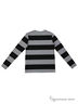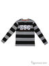 Универсальная вещь - трикотажная футболка с длинным рукавом. Динамичность придают контрастные крупные полоски серого и черного цвета. В отделке - шрифтовой принт на полочке.