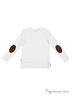 Трикотажная водолазка для мальчика, декорированная замшевыми налокотниками и эффектным принтом по полочке.