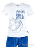 Стильная майка из хлопка с эластаном в сочетании с элегантным принтом в виде морской раковины, выложенной пайетками и шрифтовой композиции смотрится безупречно!