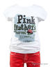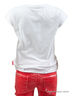 Стильная майка со спущенным плечом из комфортного трикотажа украшена выразительным принтом со стразами и настрочным шевроном.