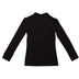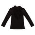 Футболка прямого кроя с длинным рукавом. Небольшой ворот-стойка продолжается декоративными лентами, завязывающимися в бантик. Ворот и полочка декорированы рюшами.
